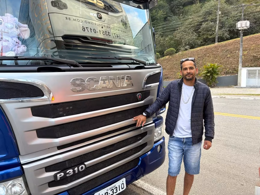 Jonathan Macena, caminhoneiro há quatro anos, veio acompanhado do sogro Reinaldo Gums, que exerce a atividade há quatro décadas. Ambos trafegam, majoritariamente, pelas rodovias de Santa Catarina no dia a dia.