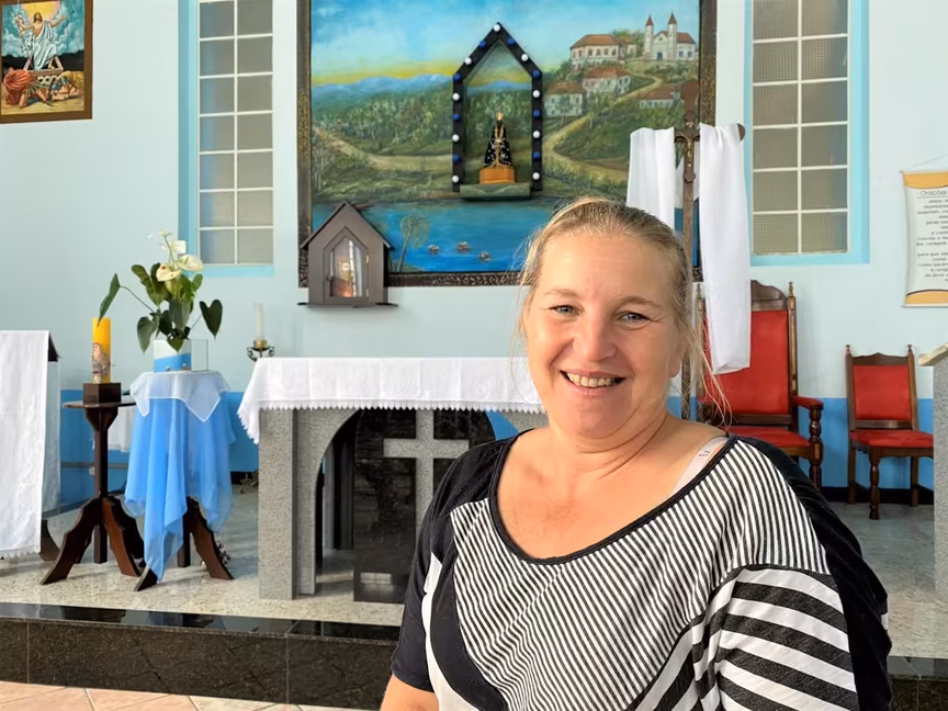 Hoje, Luciana é faxineira e capelã no templo, que conta com as ministras Catarina Venzon, Constância Werner e Lucimar Barni. A capela tem missas duas vezes por mês, além da Celebração da Palavra, às 8h30 no domingo, com as ministras. A igreja também faz homenagens em datas especiais.