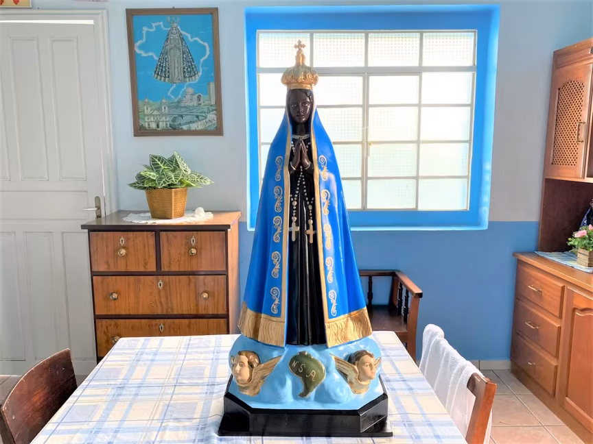 Para Luciana, além da antiga imagem de Nossa Senhora Aparecida, outra forte característica do tempo é o encontro da comunidade. “O papo na frente da igreja quando acaba a missa”, diz em uma risada. Élio reforça que a capela aproxima a comunidade e é lugar de rever os vizinhos e amigos. “Durante a semana a gente não vê ninguém. Nos domingos a gente se encontra, quem vê a gente conversa, acaba o culto e ficamos conversando mais uma hora. Colocando a fofoca em dia”, relata. “O meu pai falava assim, que ele não vinha só rezar, ele vinha rever os amigos. No tempo do meu pai, que faleceu há 10 anos quando tinha 90 de idade, não tinha celular, WhatsApp, telefone. Ele dizia que vinha na Celebração da Palavra, mas também vinha rever os amigos, saber das novidades da semana, quem ficou doente, quem melhorou, o que aconteceu. Temos essa característica até hoje, ficar na frente da igreja conversando. Não é fofoca, é conversando mesmo”, defende Luciana, sorridente.
