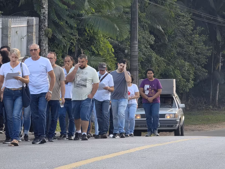 Famílias em Brusque então sobem o Morro do Rosário guiadas pela fé/Foto: Ciro Groh/O Município