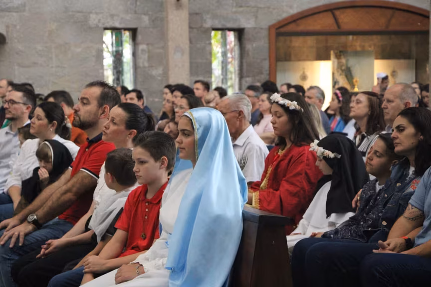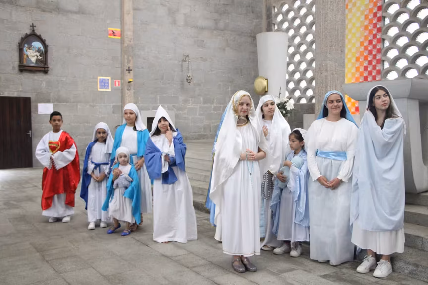 "No ano passado ela representou Maria e, esse ano, Santa Teresinha. É a maior alegria dela, nem dormiu direito a noite porque estava ansiosa. É muito bom ver como as crianças se sentem felizes vestidas de santos e têm esse estímulo de querer alcançar o céu. Ela é muito feliz em poder servir como coroinha".