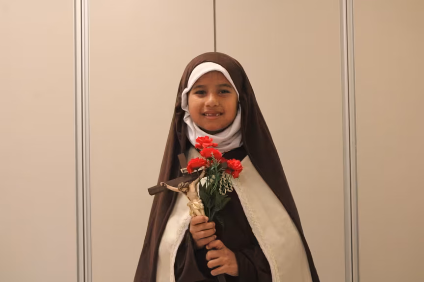 A coroinha Ísis Aparecida Almeida Goes, de 7 anos, participou da missa vestida de Santa Teresinha. Ela é coroinha na Paróquia São Luís Gonzaga há um ano, entretanto, começou a servir com três anos e meio, em Manaus, no Amazonas, onde nasceu.