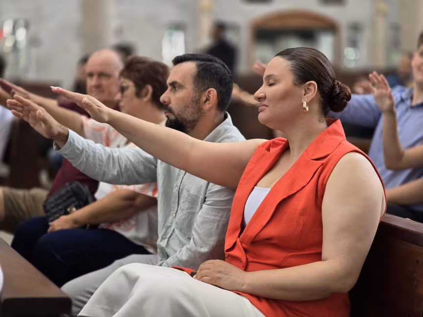 Os cânticos, entoados com fervor, ecoavam pelas imponentes paredes de pedra da igreja, criando uma atmosfera de espiritualidade que tocava profundamente os presentes.