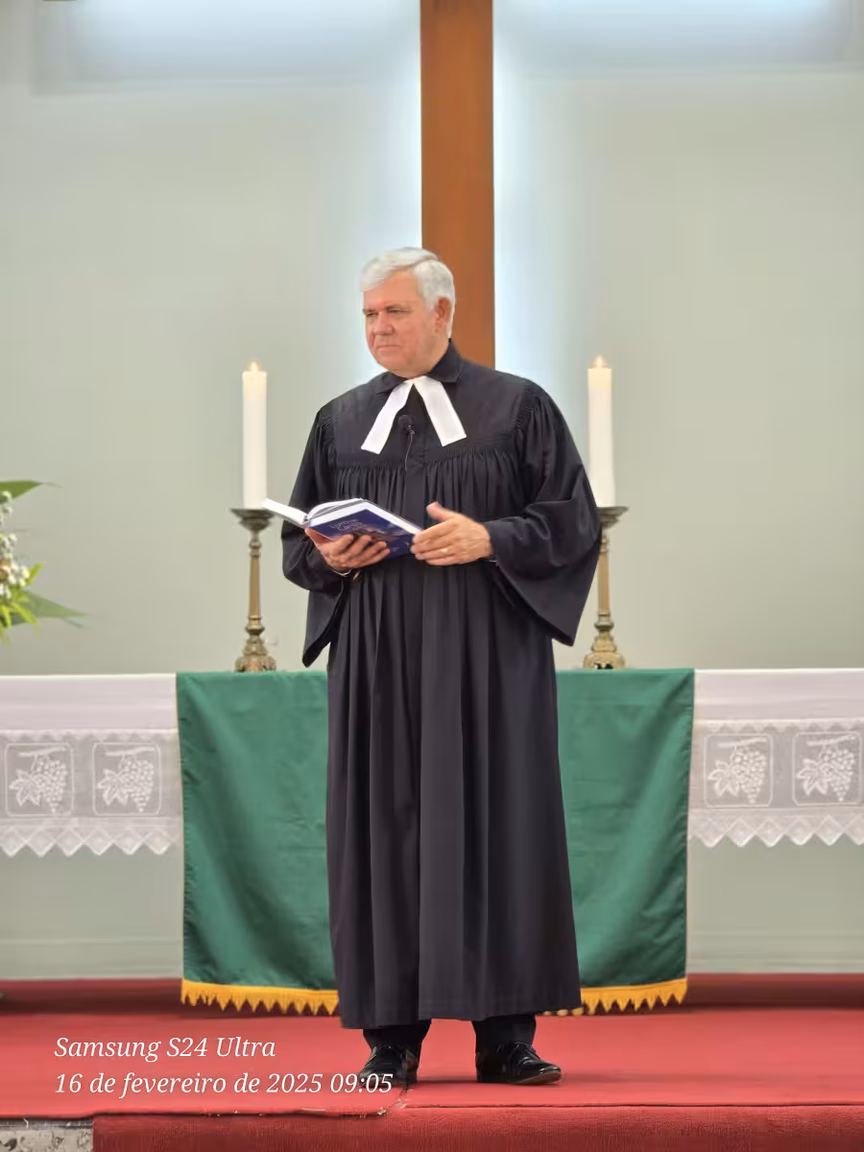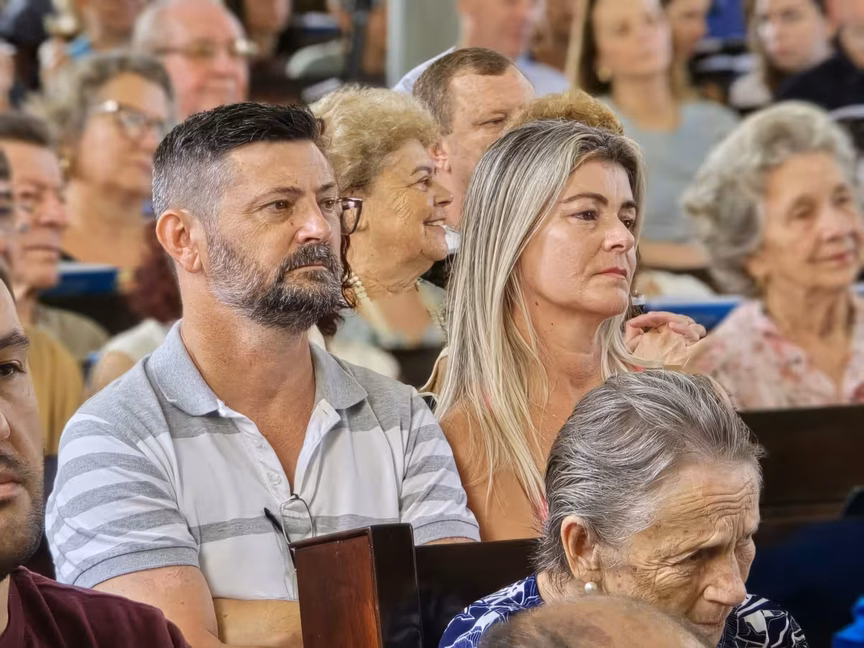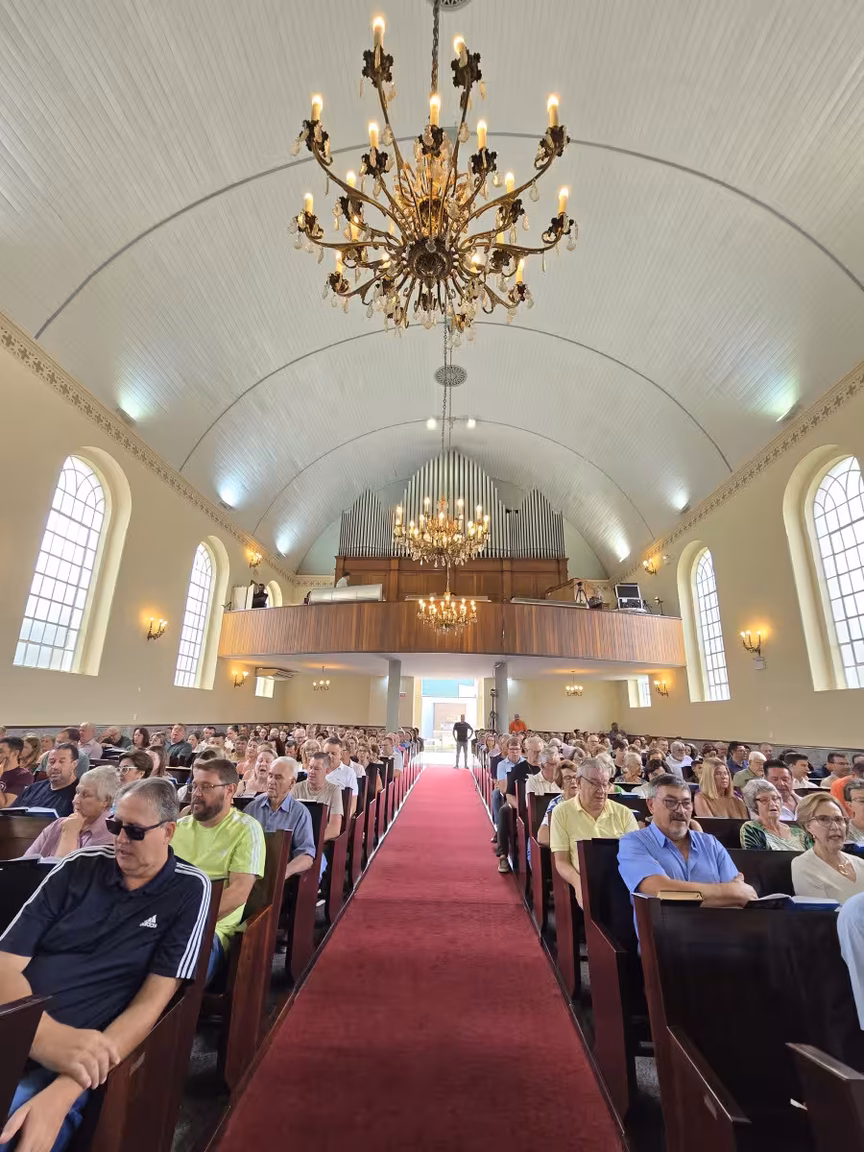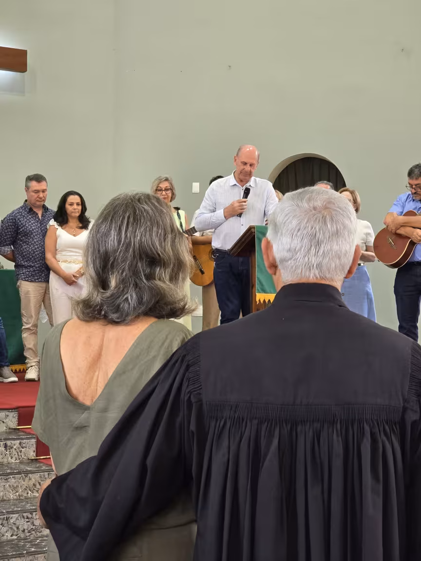 O templo, de paredes centenárias, esteve repleto de fiéis, com famílias inteiras e pessoas de todas as idades, unidas por um mesmo propósito: acompanhar o último culto conduzido pelo pastor Cláudio Schefer.