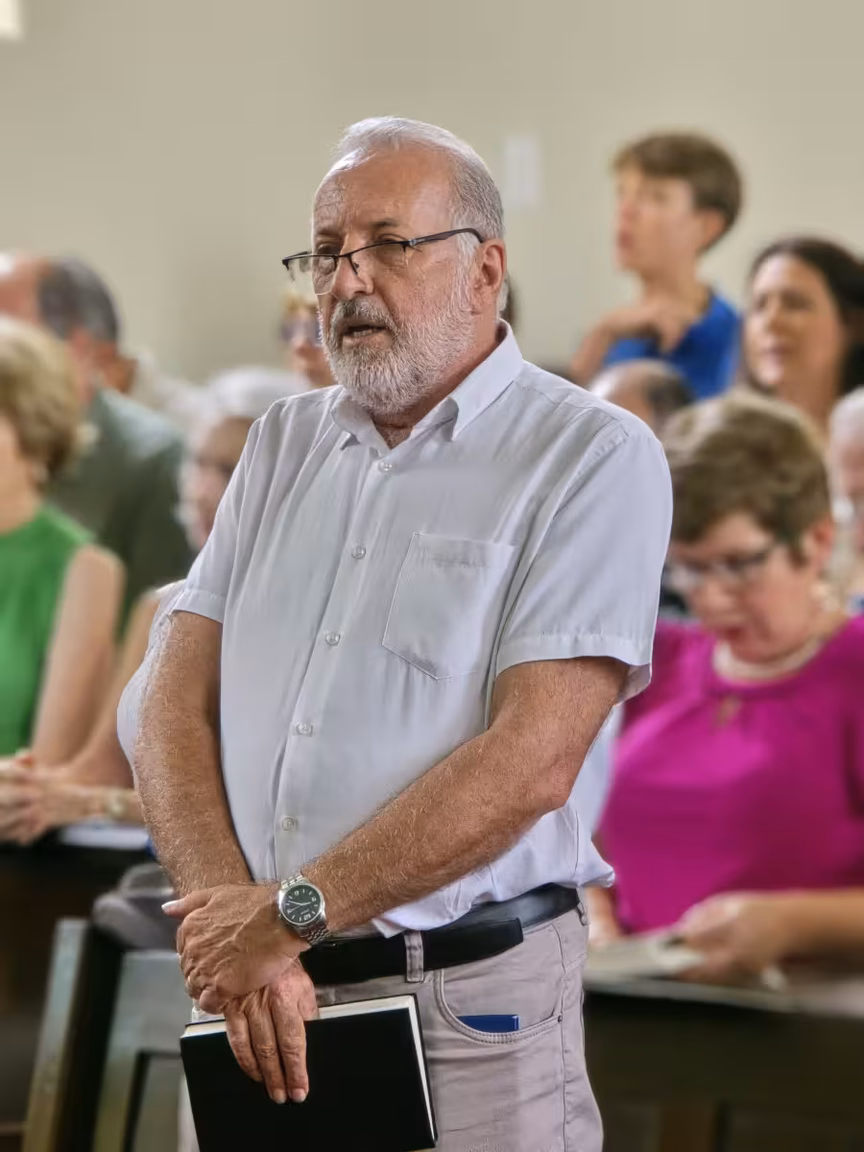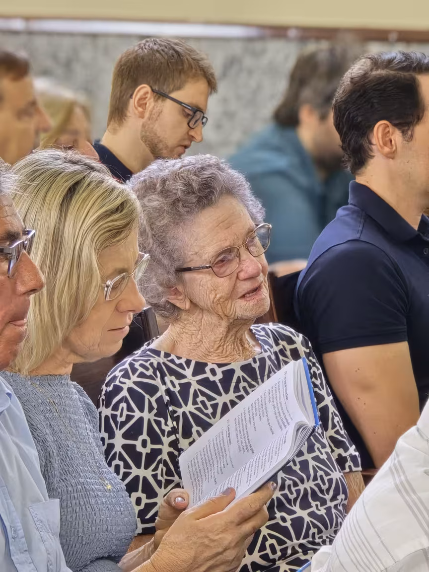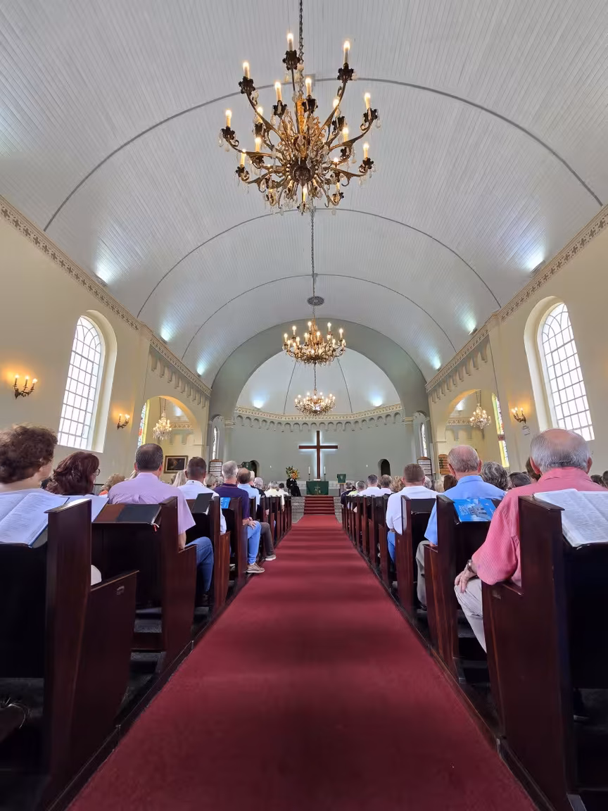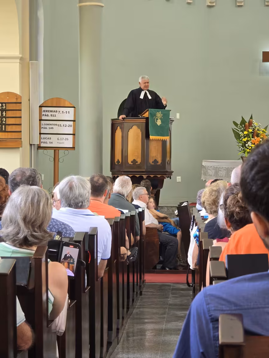 O templo, de paredes centenárias, esteve repleto de fiéis, com famílias inteiras e pessoas de todas as idades, unidas por um mesmo propósito: acompanhar o último culto conduzido pelo pastor Cláudio Schefer.