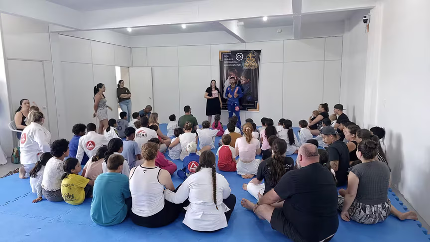 Em parceria com a Gracie Barra, uma reconhecida escola de artes marciais com atuação internacional, a iniciativa oferece gratuitamente aulas acompanhadas de orientação espiritual e familiar.