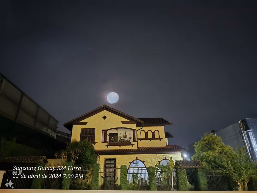 Apesar da nebulosidade que tentava ofuscá-la, ela ainda assim se fez presente, envolvendo e emoldurando o céu noturno com sua luz prateada, adicionando um toque de magia à atmosfera da cidade.