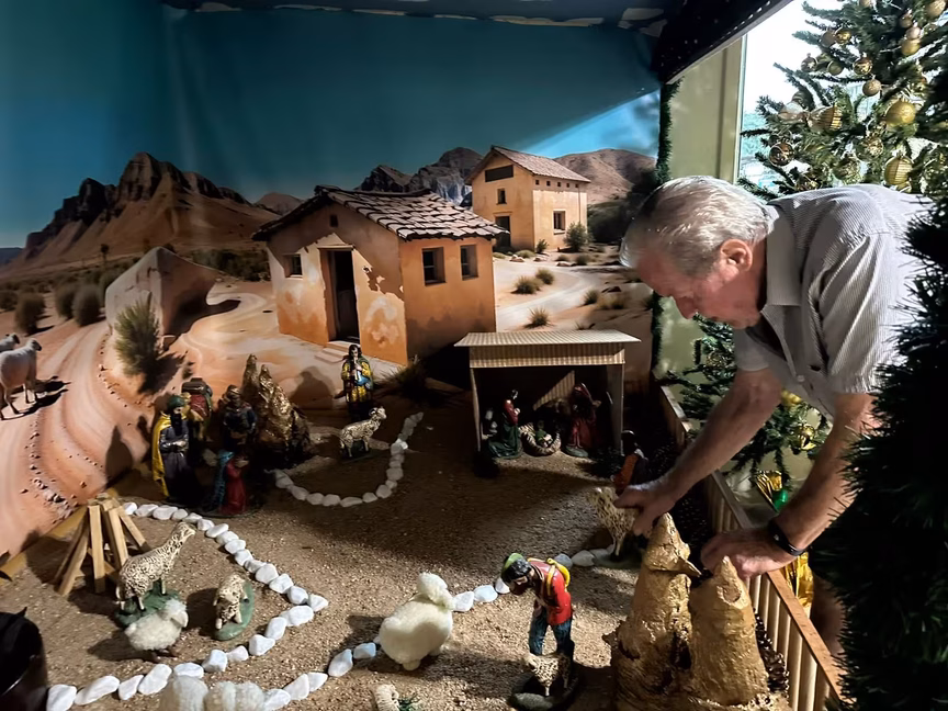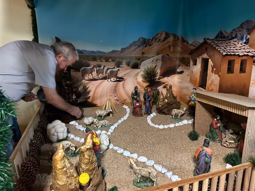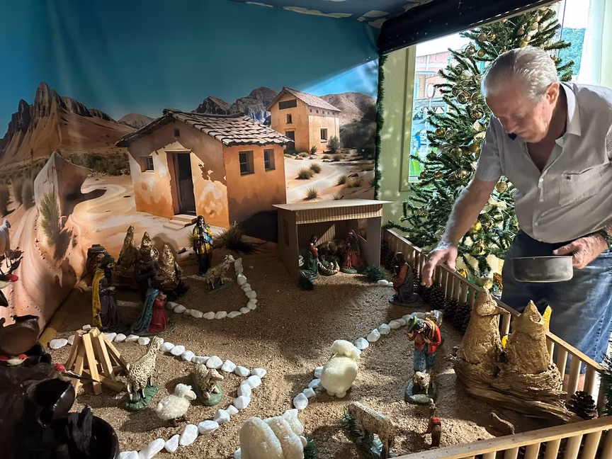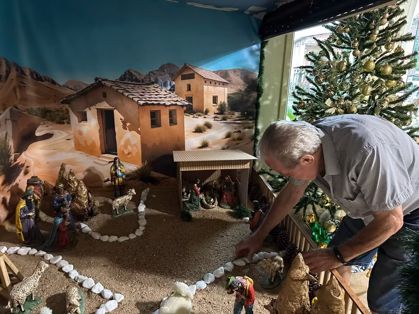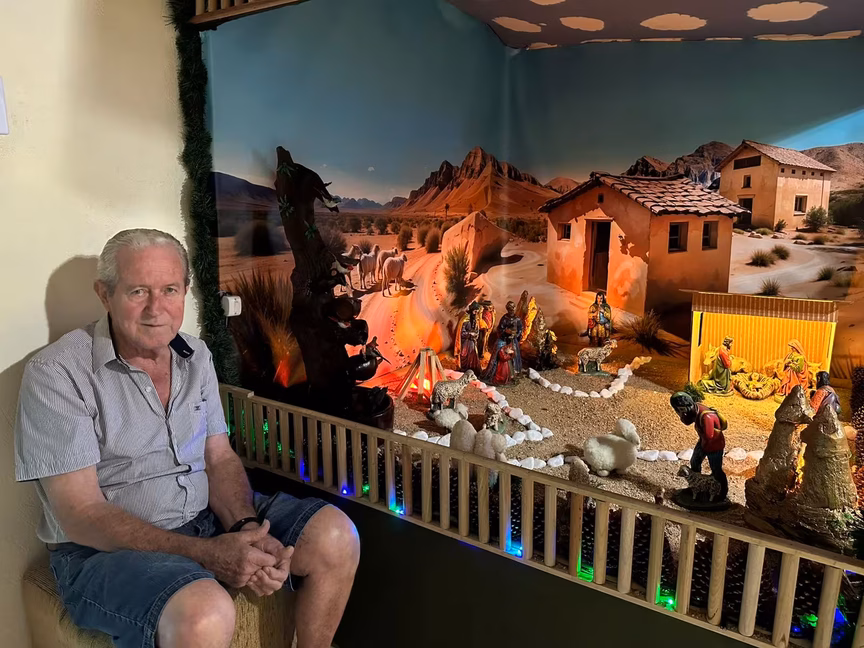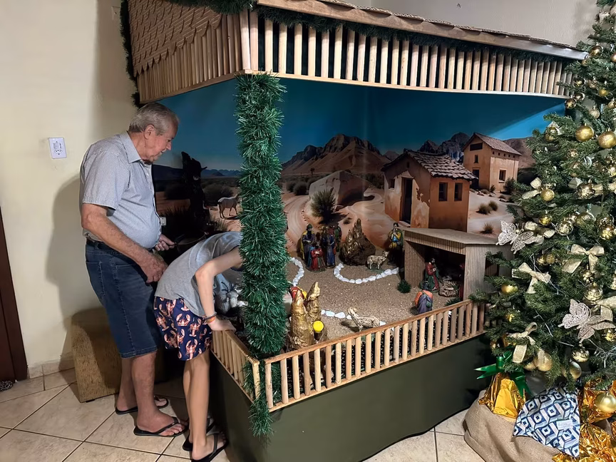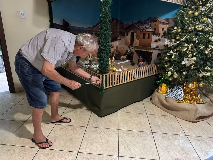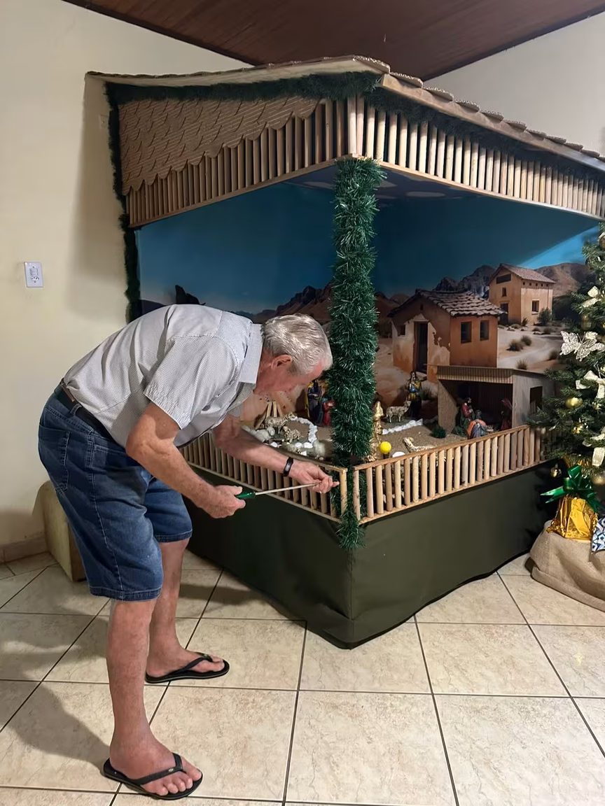 Todo ano, ele se dedica a montar um novo cenário, sempre com uma novidade que encanta e emociona os visitantes, renovando o espírito do Natal a cada detalhe.