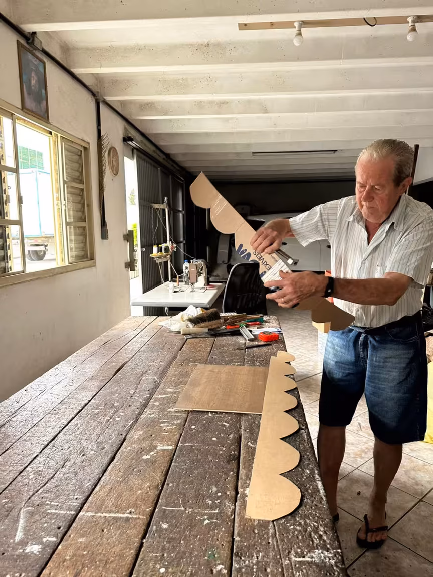 José, um artesão de Guabiruba, com quase 50 anos de experiência dedicados ao ofício da estofaria, se destaca não apenas pelo seu talento com a madeira, mas também pela criação de seu presépio, sua maior obra-prima.