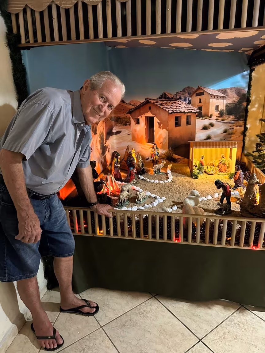Há mais de duas décadas, José Teodoro Erthal, que então celebrou 81 anos em 2024, transforma sua sala de estar em um verdadeiro cenário de fé e encantamento.