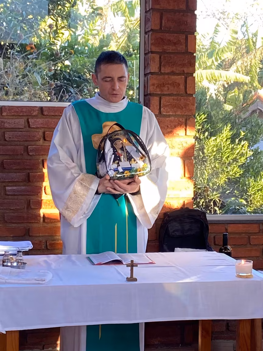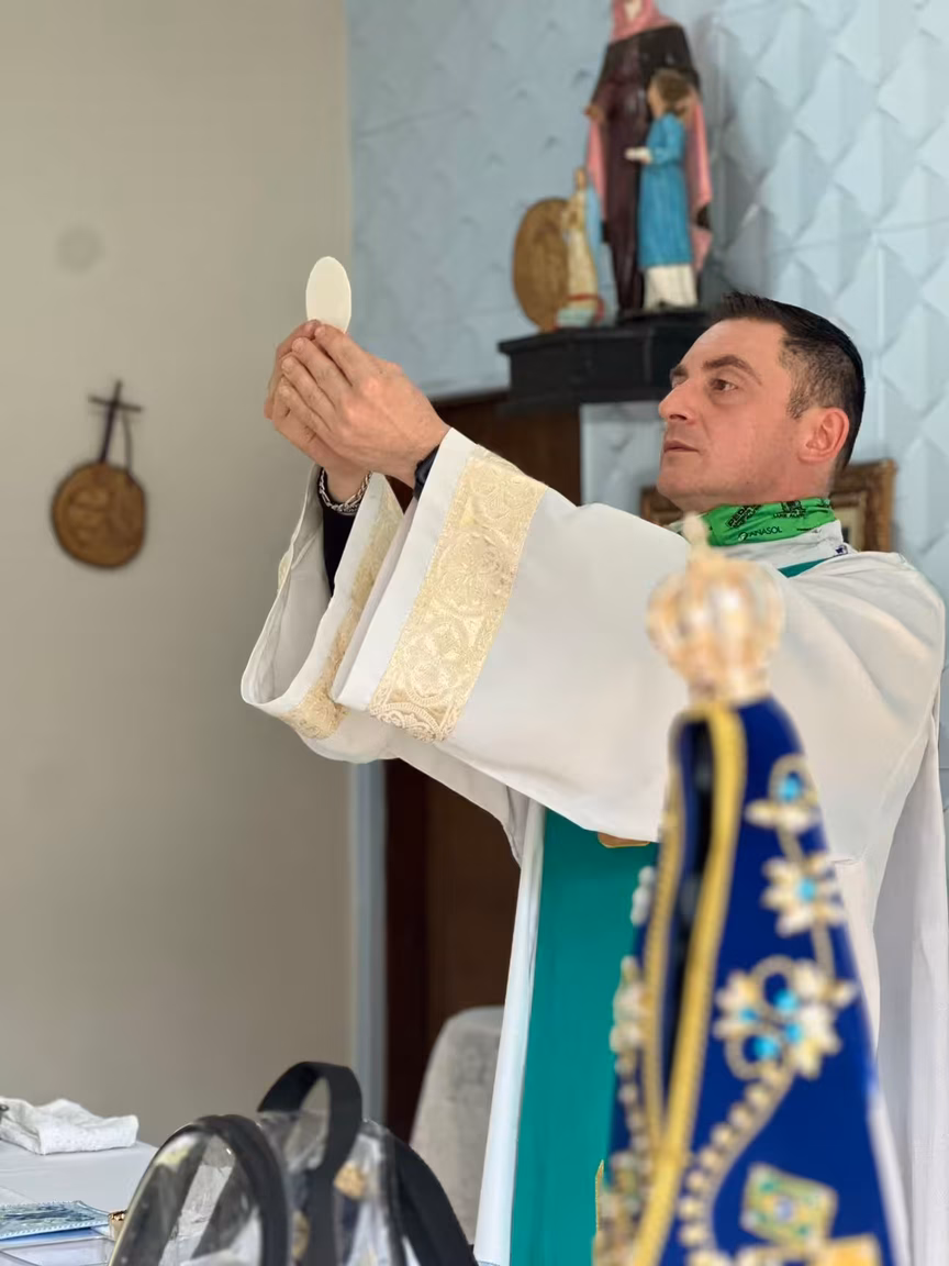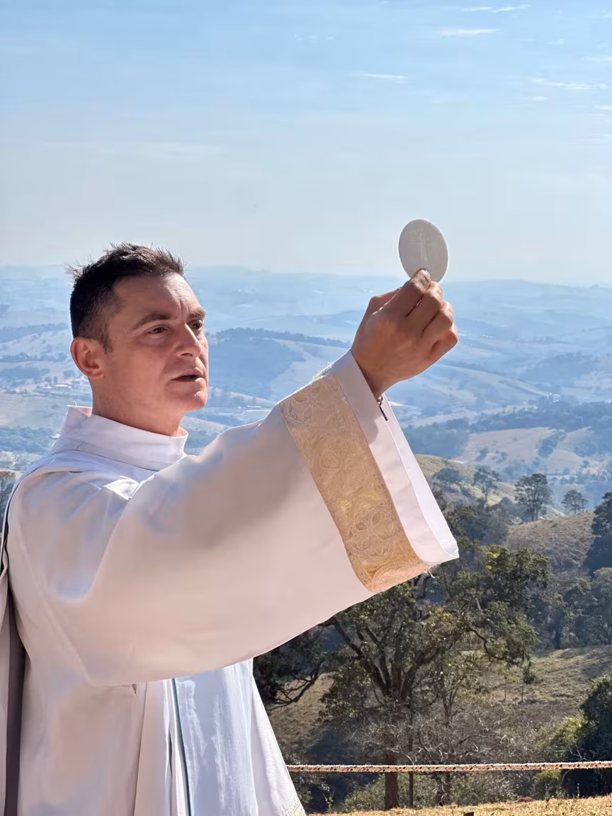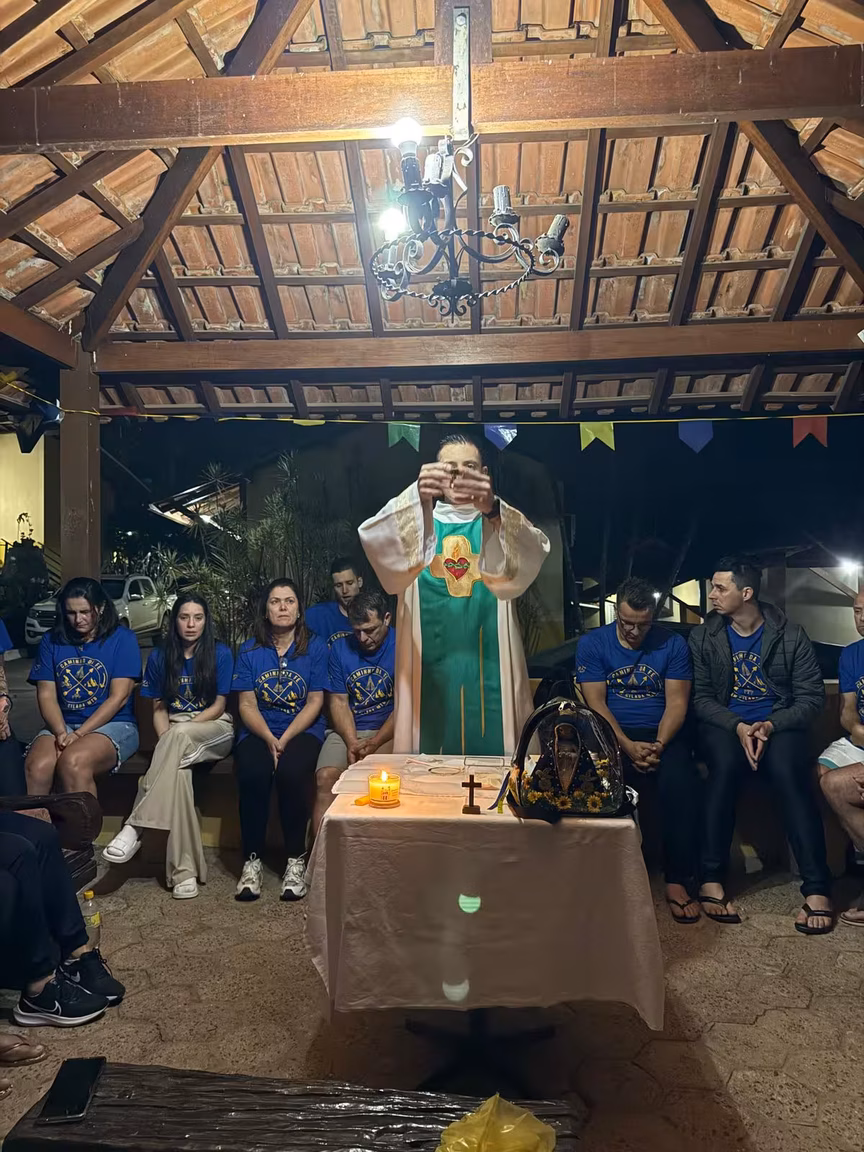 A emoção tomou conta do grupo. Muitos se ajoelharam, outros se abraçaram em silêncio, enquanto o sacerdote, visivelmente tocado, ergueu os olhos ao céu em sinal de gratidão.