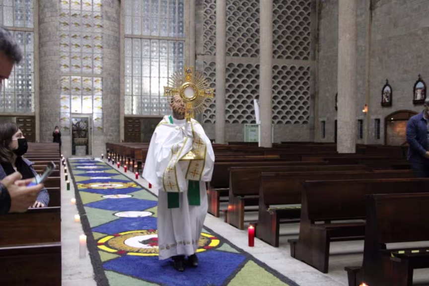Santíssimo Sacramento é conduzido em procissão pela Igreja Matriz e abençoa a cidade