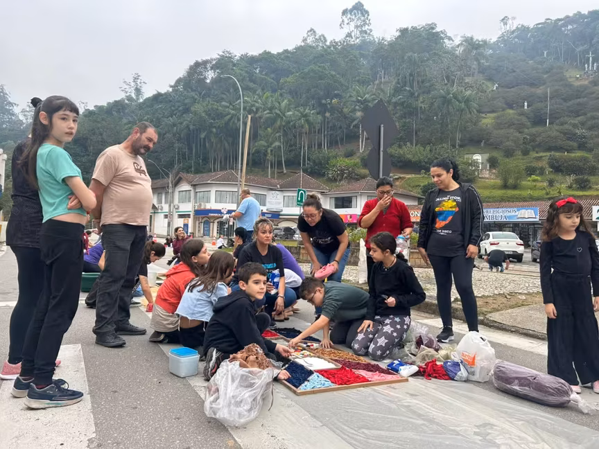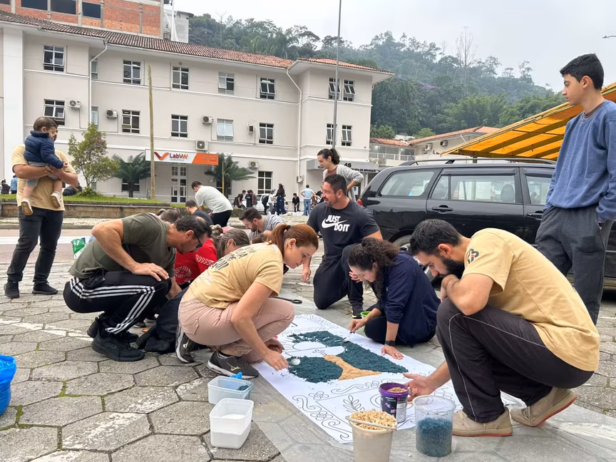 Rodrigo Machado é coordenador de um dos grupos do Movimento de Casais Jovens (MCJ). Morador do bairro São Pedro, em Guabiruba, ele conta que eles imprimiram desenhos e mobilizaram cerca de 25 casais para organizar a confecção dos tapetes. Eles organizaram inclusive uma barraca com café da manhã para o grupo.