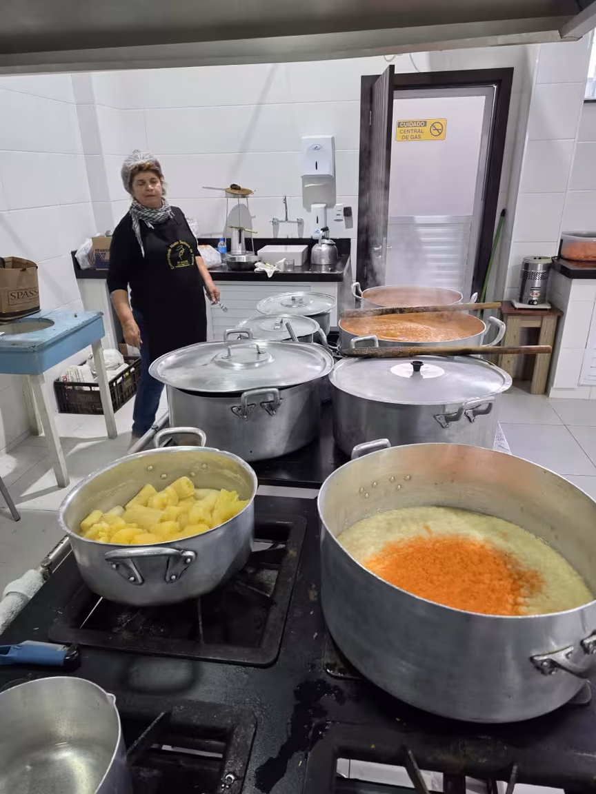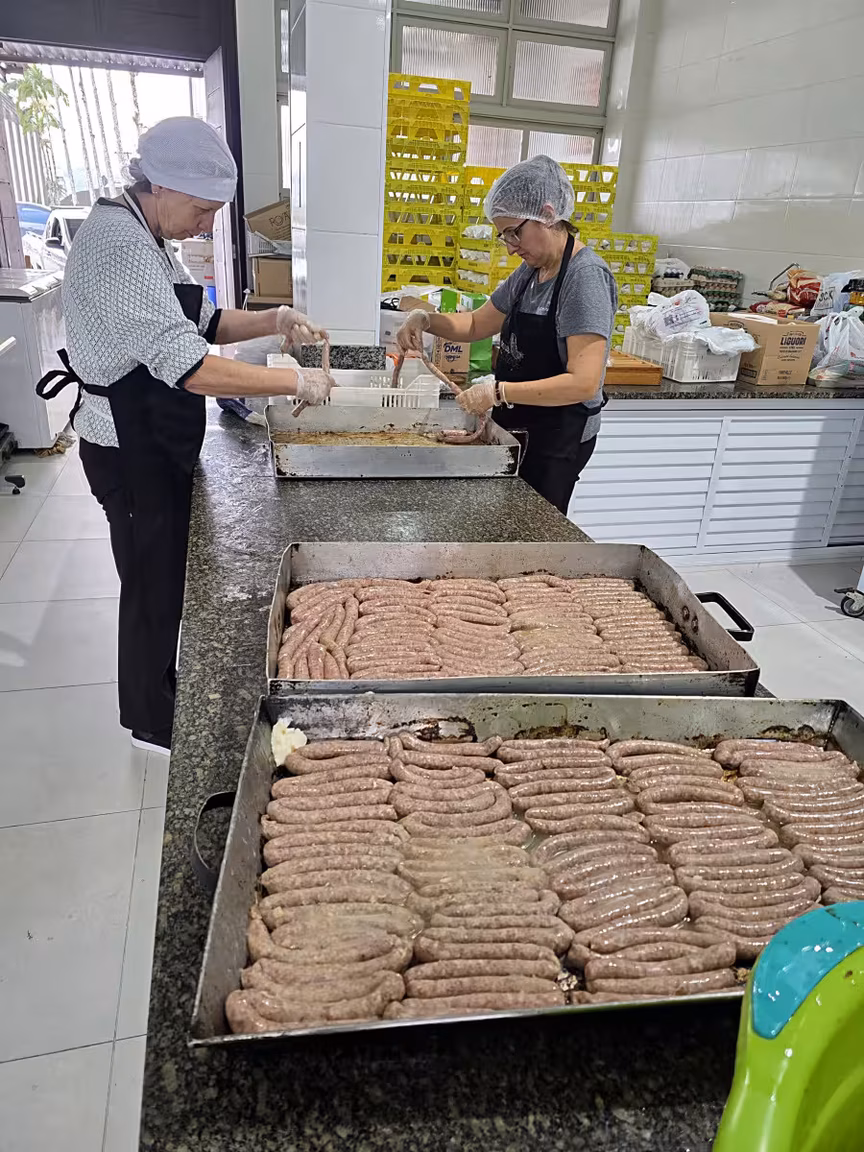 Na cozinha, o cheiro dos temperos já anuncia a festa. As mãos experientes das cozinheiras preparam com carinho os ingredientes do cachorro-quente e do tradicional pirão com linguiça, numa verdadeira força-tarefa silenciosa e cheia de significado.