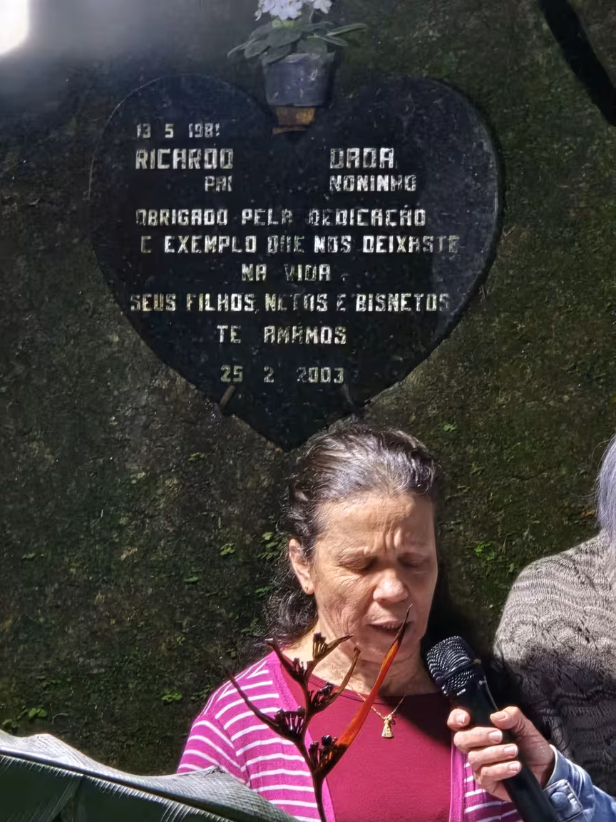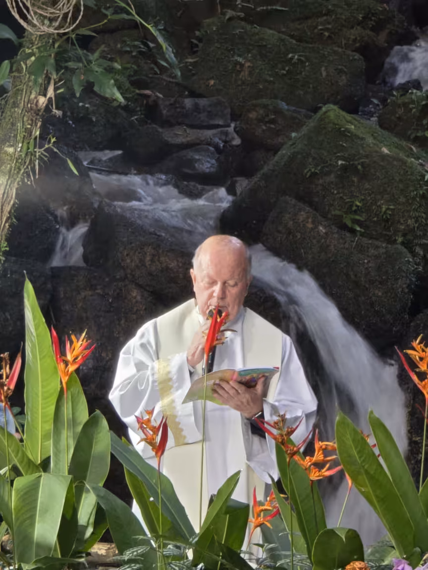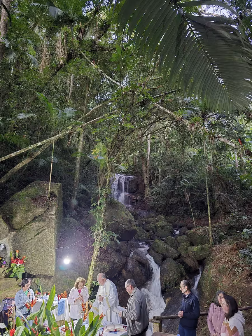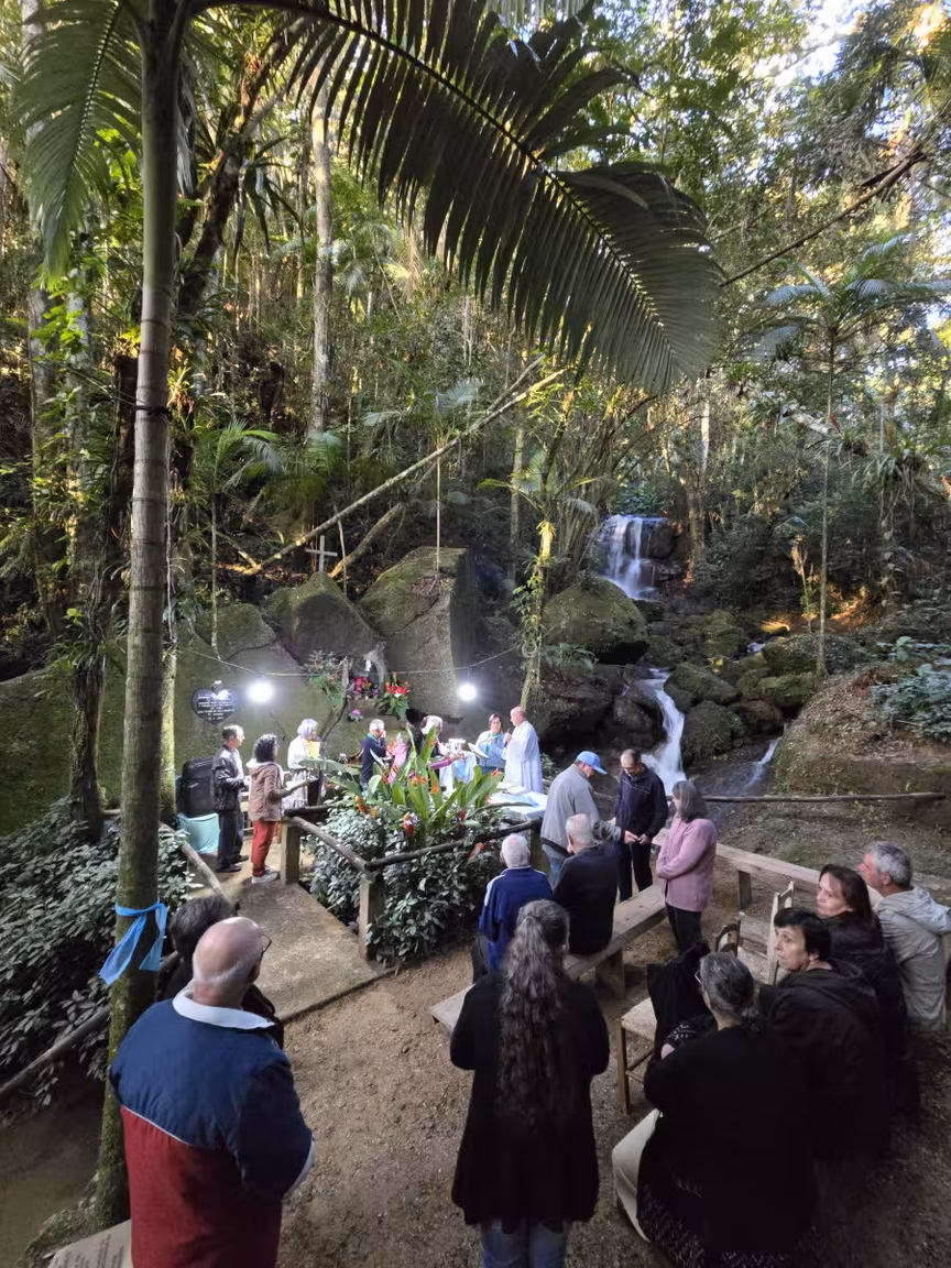 Uma missa foi então celebrada na encantadora Gruta do Vô Ricardo, situada no meio da mata, tendo a sinfonia natural de uma cachoeira como pano de fundo.