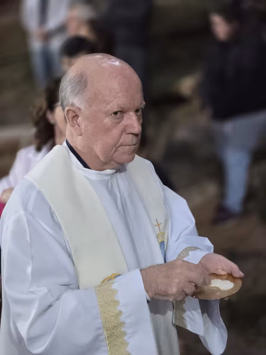 "Fiquei muito emocionado ao ver o padre levantar a hóstia consagrada e saber que há 40 anos meus pais celebraram suas Bodas de Ouro aqui," relata Antônio, comovido.