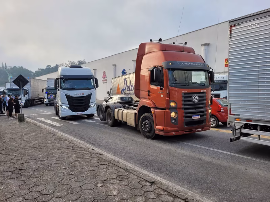 VÍDEO – Caminhoneiros buzinam em alusão a São Cristóvão e partem em carreata até Dom Joaquim, em Brusque