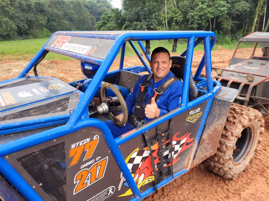Diego, o Pica-pau, é outro nome conhecido do Jeep Cross da Fenajeep. Ele frequenta a festa jipeira desde 2005, quando despertou a paixão pelas corridas de jipe. Todos os anos, Pica-pau viaja de Itapeva (SP) para Brusque.