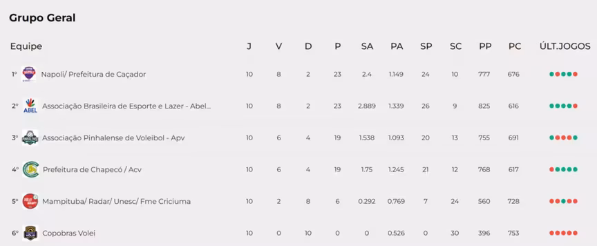 O próximo rival da Abel será a Associação Pinhalense de Voleibol. A outra semifinal será entre Napoli, de Caçador, e a ACV, de Chapecó.