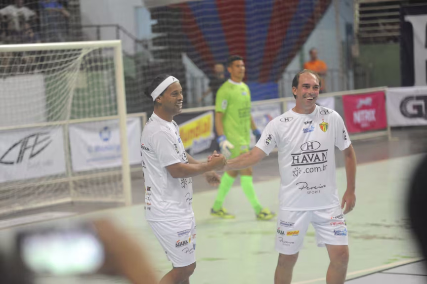 Amigos do Ronaldinho Gaúcho vencem jogo beneficente com lotação máxima na Arena Brusque