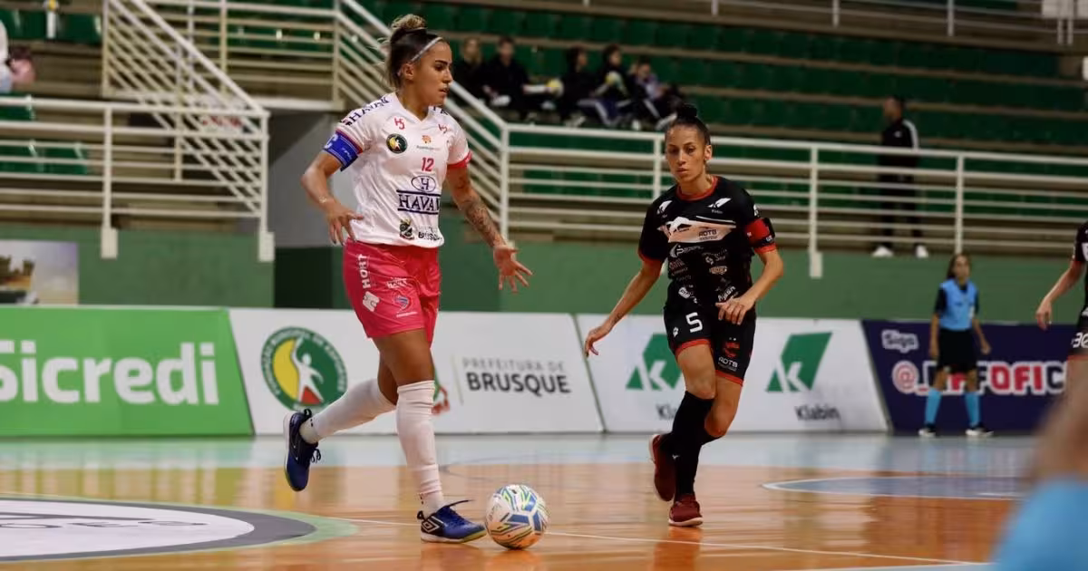 O Barateiro Havan Futsal enfrenta o Taboão da Serra-SP às 19h30 desta sexta-feira, 30, no ginásio Frederico Schwanke, em Luiz Alves, pela Liga Feminina de Futsal. A equipe brusquense é a atual terceira colocada, com oito pontos em cinco jogos, enquanto o time do interiro paulista é o atual líder, com quatro vitórias em quatro partidas. A partida tem transmissão ao vivo da BandSports.