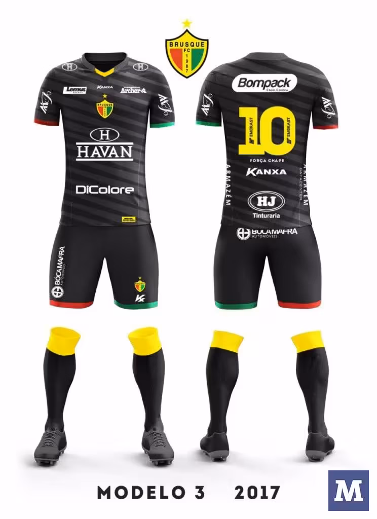 As primeiras camisas que chegam ao mercado terão uma frase abaixo do número com os dizeres “Força Chape”. Segundo o conselheiro e membro do departamento de futebol, André Rezini, a decisão foi tomada pela diretoria do Bruscão como uma forma de homenagear a Chapecoense, vítima de um trágico acidente. “O Brusque deve jogar o primeiro turno todo com essa camisa. E a primeira compra das empresas devem vir com o Força Chape. A partir da segunda remessa as camisas já não vem mais com essa homenagem”, explica. O preço para os novos modelos vai variar e chegar no máximo a R$ 99,90.