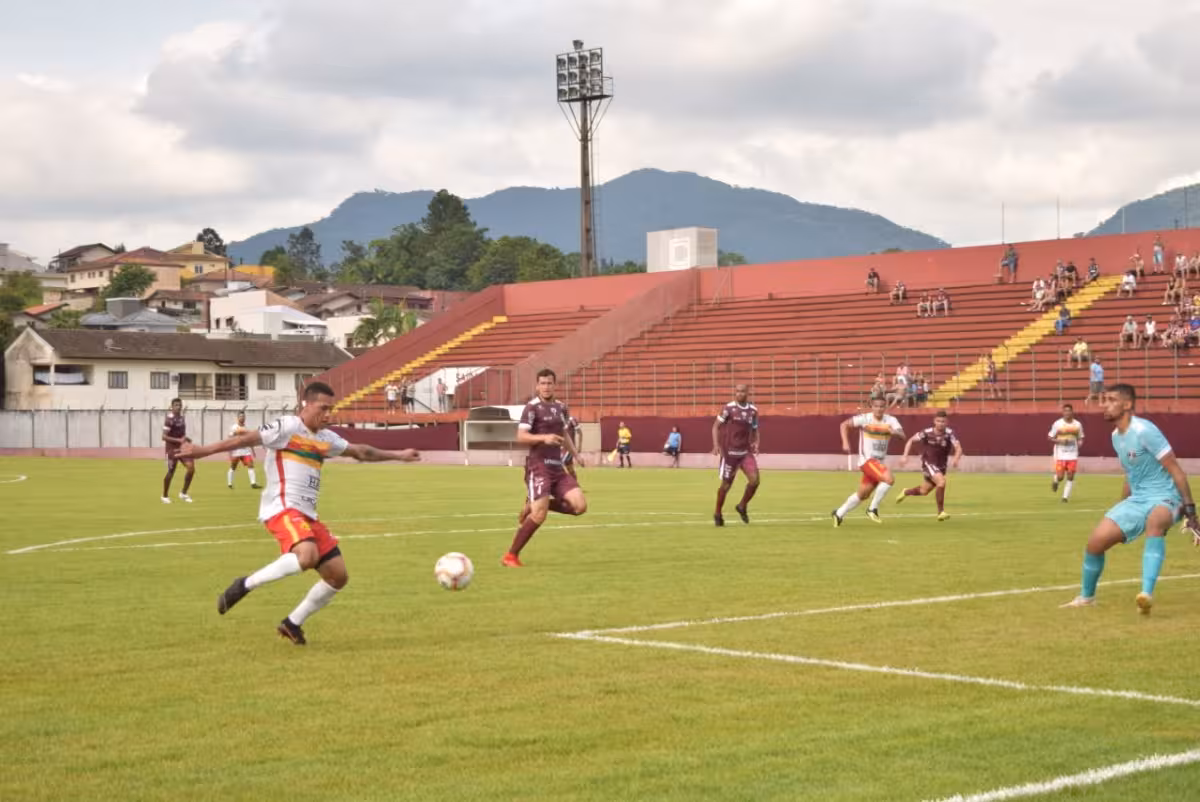 A equipe da casa, que também vai disputar o Campeonato Catarinense da Série A a partir do dia 22, saiu na frente, abrindo o placar já aos três minutos. O Brusque empatou aos 19, com Thiago Alagoano.