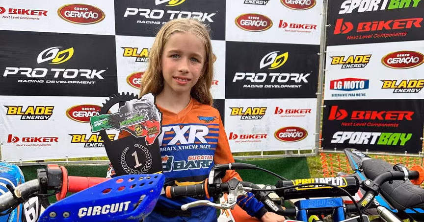 A menina foi campeã na categoria 50cc do velocross, que é composta por crianças de 5 a 9 anos. Nas redes sociais, Valetina registrou o feito e agradeceu a Deus, família e os patrocinadores. “Eu tenho muitos sonhos e o primeiro deles conquistei hoje, me tornei a primeira MENINA a ser campeã catarinense de velocross’, escreveu a menina.