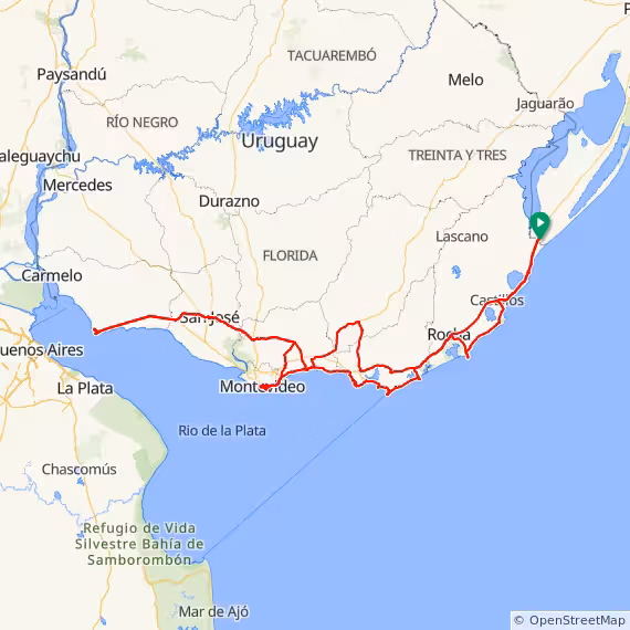 O retorno a Chuy foi feito passando por diversos pontos do litoral, incluindo Piriápolis, Punta del Este, José Ignacio, La Paloma e outros.