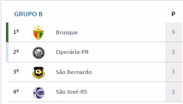 O outro jogo da rodada é São Bernardo x São José, que começa às 16h deste domingo, 16. A classificação ficaria da seguinte forma em caso de vitória do Brusque e empate no outro jogo: