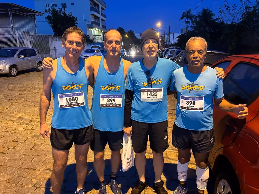 Quatro amigos de Blumenau vieram a Brusque disputar a Corrida Apae, a maioria pela primeira vez. João Jeremias, Rodolfo, Vasmiro e o professor Roberto Flores, popular Lico, são o quarteto blumenauense na corrida.
