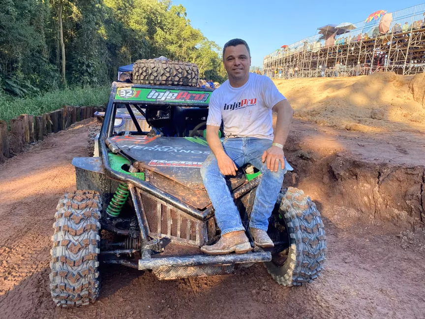 Logo atrás, estava o integrante da equipe Tivy Motorsport, Silvio Alberto Ambrosi, 41, que participa da Fenajeep há muitos anos e já foi campeão seis vezes no evento. “A cada vez que a gente vem para Fenajeep é um aprendizado novo, tanto de pista, de preparação dos carros e pilotagem”, aponta.