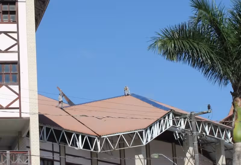 Em reforma, telhado da Arena Brusque recebe últimos ajustes