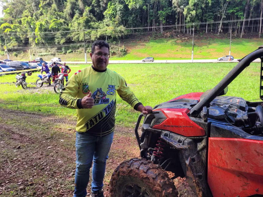 Piloto de moto, Djone Cler de Oliveira, de Camboriú, veio para Brusque participar do Encontro de Trilheiros Tatu Trail pela primeira vez. O participante destacou a quantidade de lama na pista como um dos pontos positivos para garantir a diversão dos trilheiros.