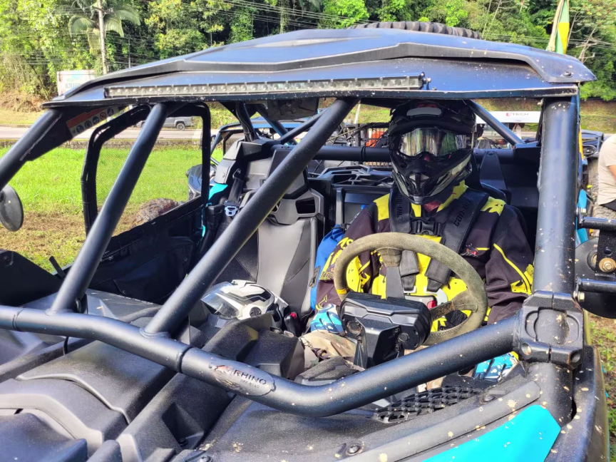 Pouco antes de Cleiton, largou Junior Mafra com UTV. Para o experiente piloto de Brusque, que participa desde a primeira edição, nem mesmo o forte sol deste domingo foi capaz de secar a pista, já que há muitos pontos em que o calor do sol não chega por ser mata fechada.