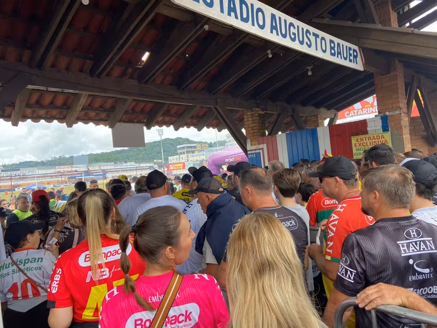 Em desvantagem, o Brusque precisava vencer por 1 a 0 para levar a partida para os pênaltis. Porém, antes do jogo começar, o que se viu foram torcedores de todas as idades animados e confiantes em mais um título estadual em casa.
