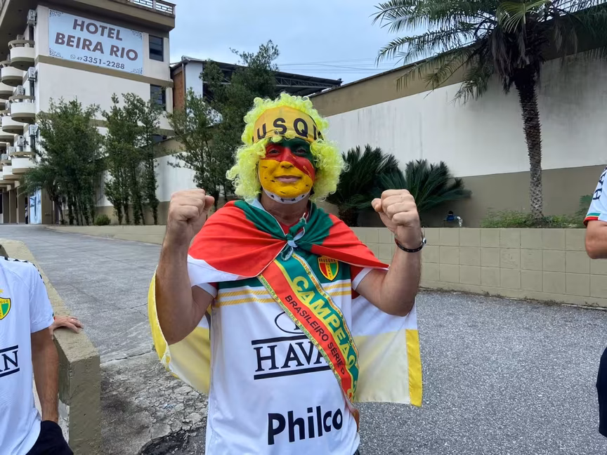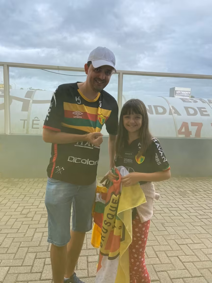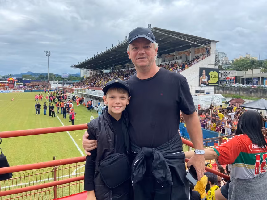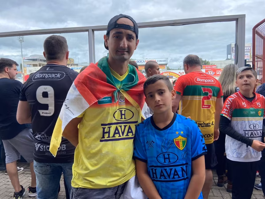 “A gente sempre vem em família. Somos apaixonados pelo Brusque e também vamos assistir jogos fora quando dá”, diz o pai.