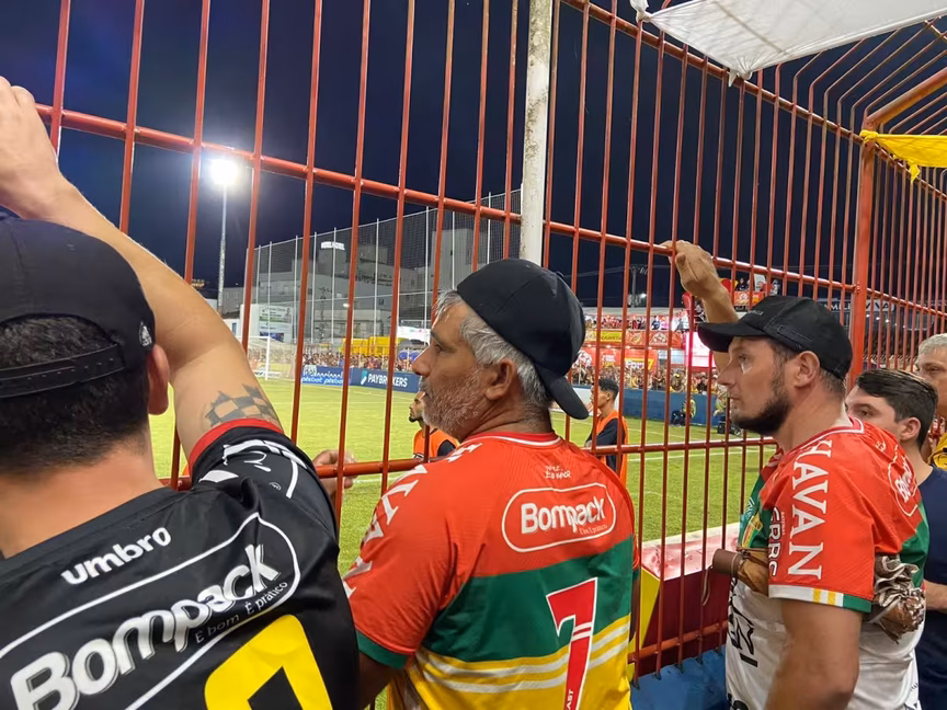 Morador de Guabiruba, Adriano Barbosa trouxe o filho Luiz Felipe, de 11 anos, para mais uma final. No ano passado eles acompanharam o título do Bruscão e estavam confiantes na vitória.