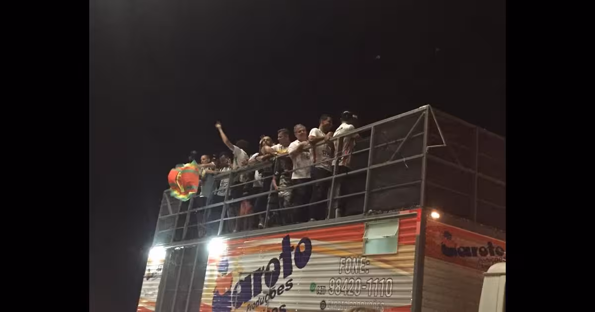 Na saída da carreata, os jogadores comemoravam cantando 'Todo mundo tenta, mas só o Brusque é penta!'