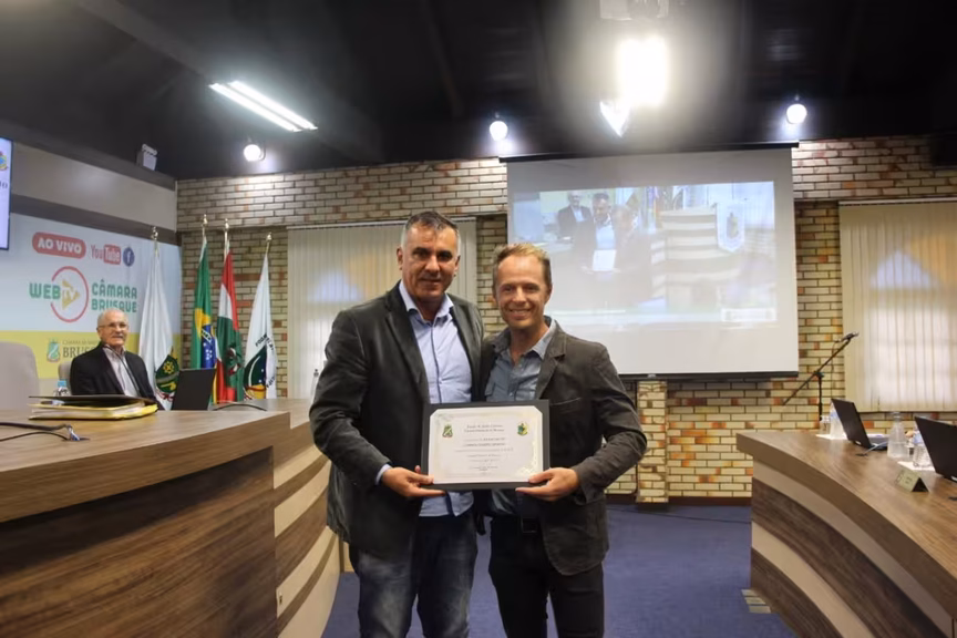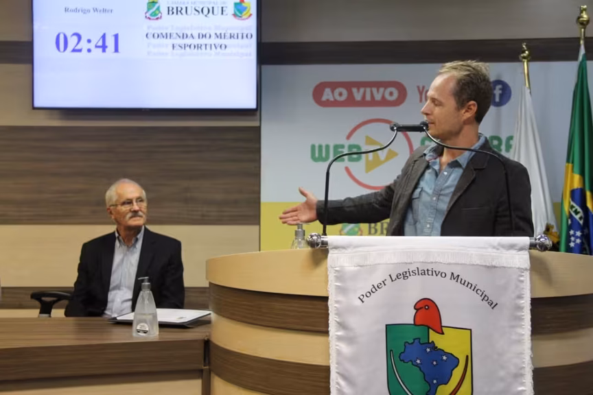 Após 30 anos de uma conquista marcante, Rodrigo Welter foi homenageado com a comenda de mérito esportivo na Câmara de Vereadores de Brusque. A entrega ocorreu na sessão ordinária de terça-feira, 30. Em agosto de 1992, o brusquense foi o campeão do mundial de bicicross, realizado na Bahia.