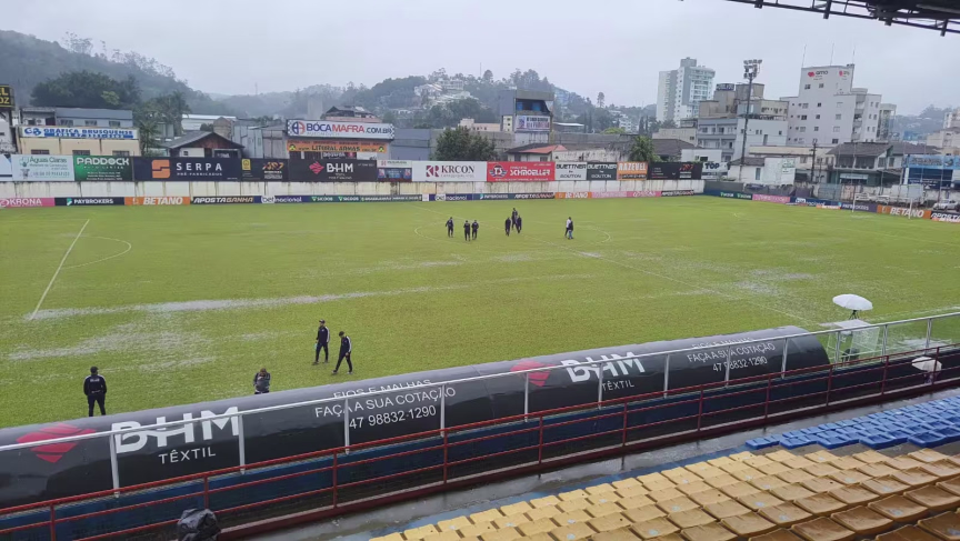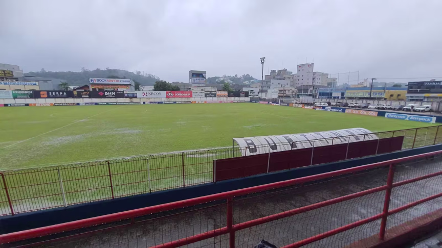 O Brusque disputa a última rodada da segunda fase da Série C do Campeonato Brasileiro contra o São José-RS às 16h deste domingo, 8. Entretanto, imagens mostram o gramado do estádio Augusto Bauer encharcado.