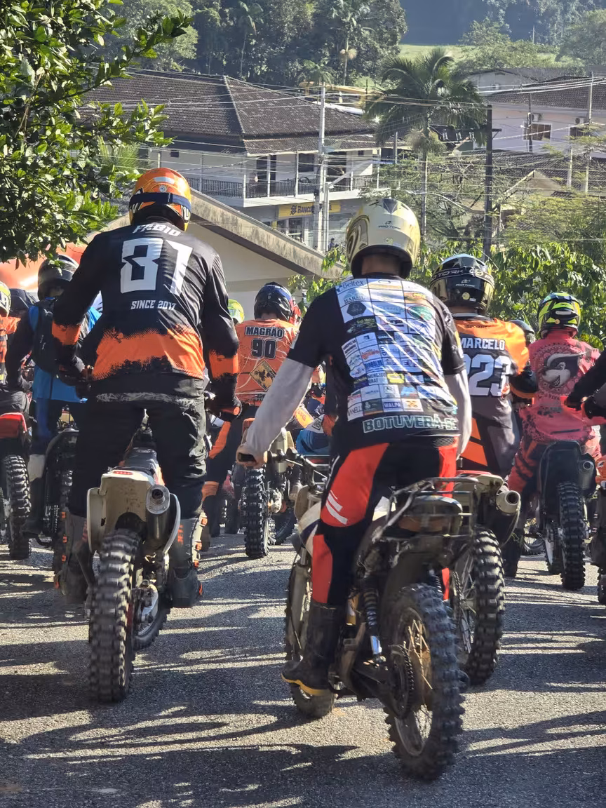 Mas não foi apenas a adrenalina que marcou o dia. Os moradores de Botuverá também se envolveram. Pelas calçadas, nas esquinas e até mesmo nas janelas, as pessoas acompanhavam o desfile de capacetes coloridos e jaquetas enfeitadas.