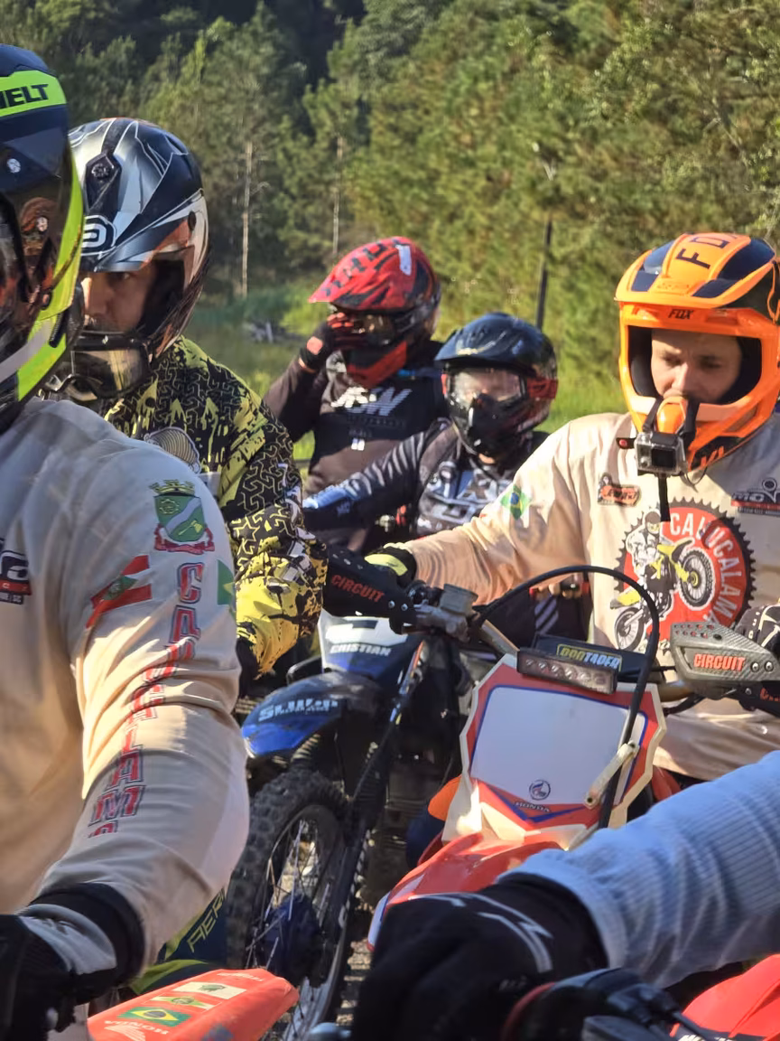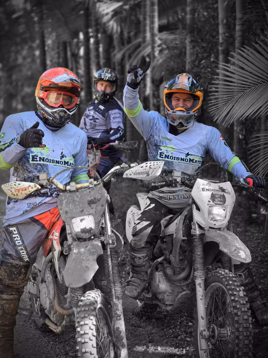 E então, com o ronco dos motores ecoando pelas ruas, os trilheiros partiram. Percorreram trilhas sinuosas pela mata, desafiando a natureza e testando suas habilidades.