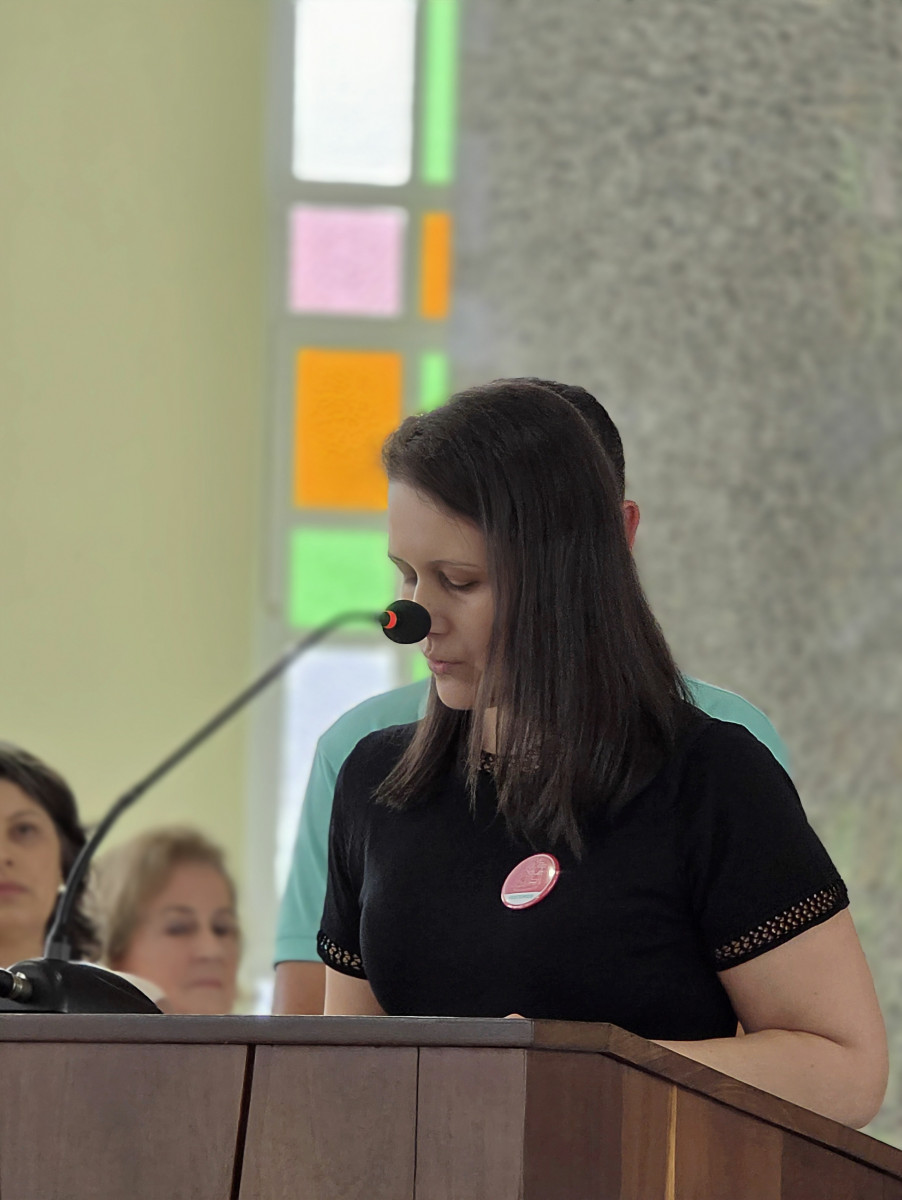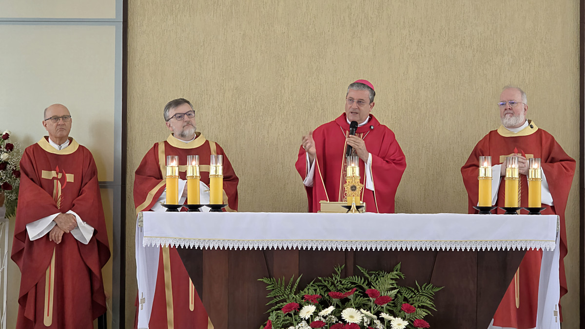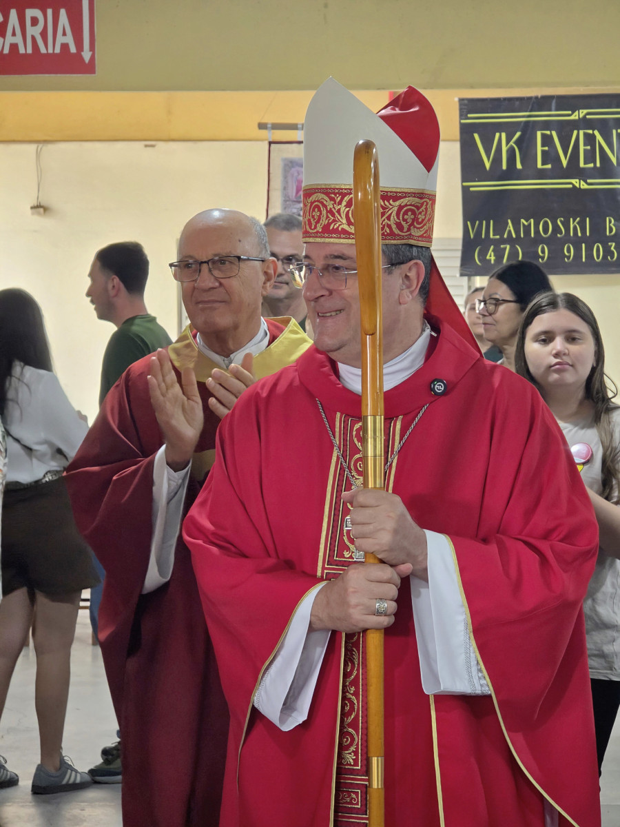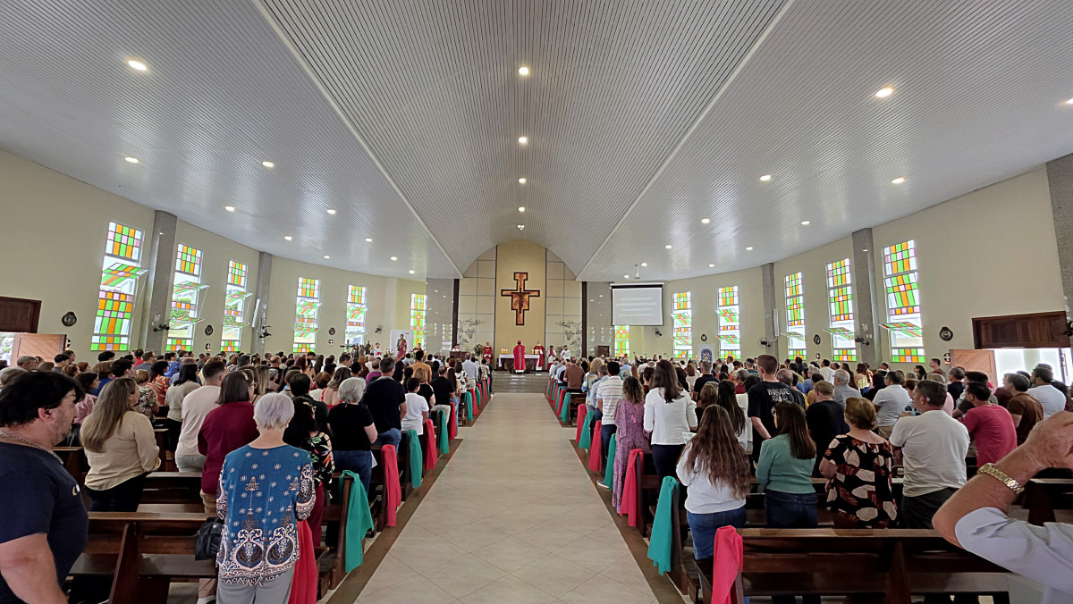 A celebração eucarística, presidida por Dom Onécimo Alberton, bispo auxiliar da Arquidiocese de Florianópolis, contou com expressiva participação dos fiéis.