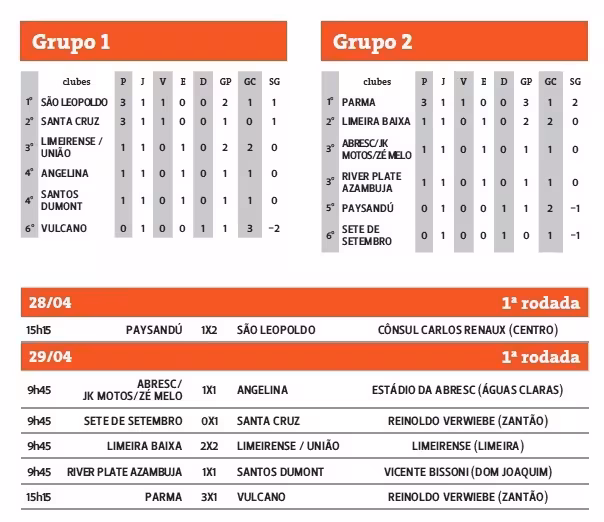 Confira os resultados da primeira rodada:
