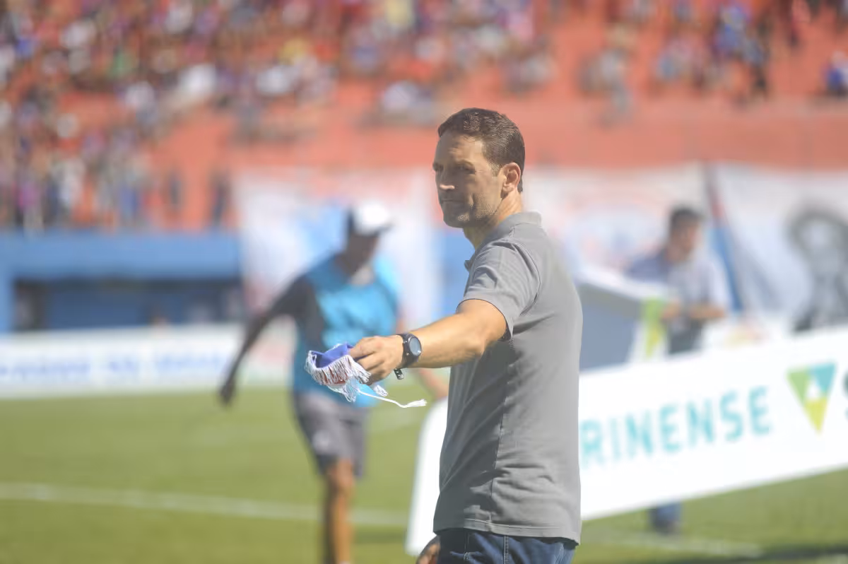 Caranhato chegou ao Brusque no olho do furacão. Ao mesmo tempo que vive pressões interna e externa por vitórias, o técnico do Bruscão precisa montar o quebra-cabeças formado pela ausência de jogadores importantes, além de ter pouco tempo para treinar – o time jogou domingo, treinou segunda, viajou terça e joga na quarta. “Estou tentando não encher os atletas de informações. Informação é como o remédio, se você dá demais vira veneno”.