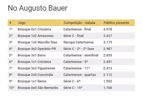 Final do Catarinense foi o jogo com mais público no Augusto Bauer; contudo, média não chegou a 2 mil por jogo no ano