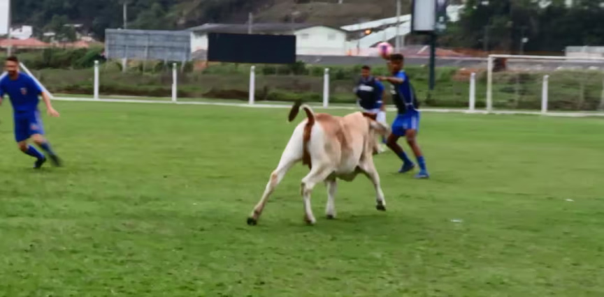Vídeo: Bezerros invadem gramado e divertem equipe do Carlos Renaux durante treino
