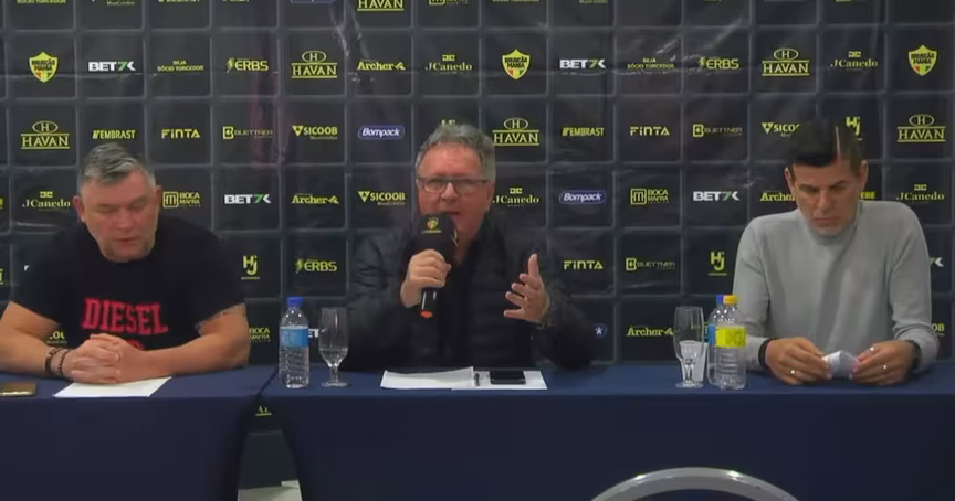 Antes da coletiva, durante a apresentação de receitas e despesas no primeiro semestre de 2024, o diretor-financeiro Lana lamentou a falta de apoio da cidade e da torcida. O Brusque tem 63 sócios-torcedores no momento.