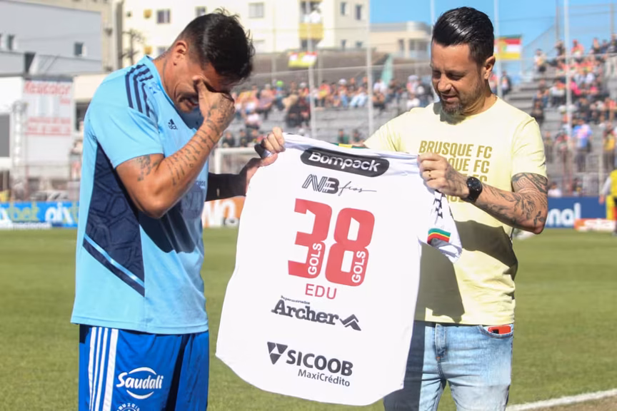 Antes da partida, o Brusque prestou uma homenagem a Edu, hoje atacante do Cruzeiro. Ele recebeu uma camisa com o número 38, por seus 38 gols marcados pelo quadricolor. O Imperador do Vale é o segundo maior artilheiro da história do clube, e se emocionou com o carinho da torcida e da diretoria do Bruscão. Esta foi sua primeira partida no Gigantinho desde que deixou o clube, ao fim da temporada 2021.